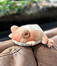 Bread Frog is 5" in length and 4" wide, made with minky fabric and stuffed with fluff and beans to give him a bit of weight! If you close your eyes and imagine yourself holding a large burger you're very close to imagining holding a froggy.