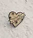 1" wide lapel pin in matte black metal and cream coloured soft enamel. Comes with a metal locking pinback so it'll stay on your stuff real good!