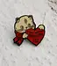 1" wide lapel pin in matte black metal and soft enamel with glossy epoxy coating. Comes on branded card with locking pinback.