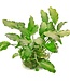Schismatoglottis prietoi can resemble Anubias, wit 3-8 cm long, eliptic leaves. Growth is faster, though, and it grows best planted in the bottom layer, where it willingly produces runners. Read more..