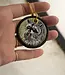 This is a 2" wide double-sided embroidered keychain with 100% embroidery coverage (rather than just a design embroidered on canvas!) with gold metal hardware.